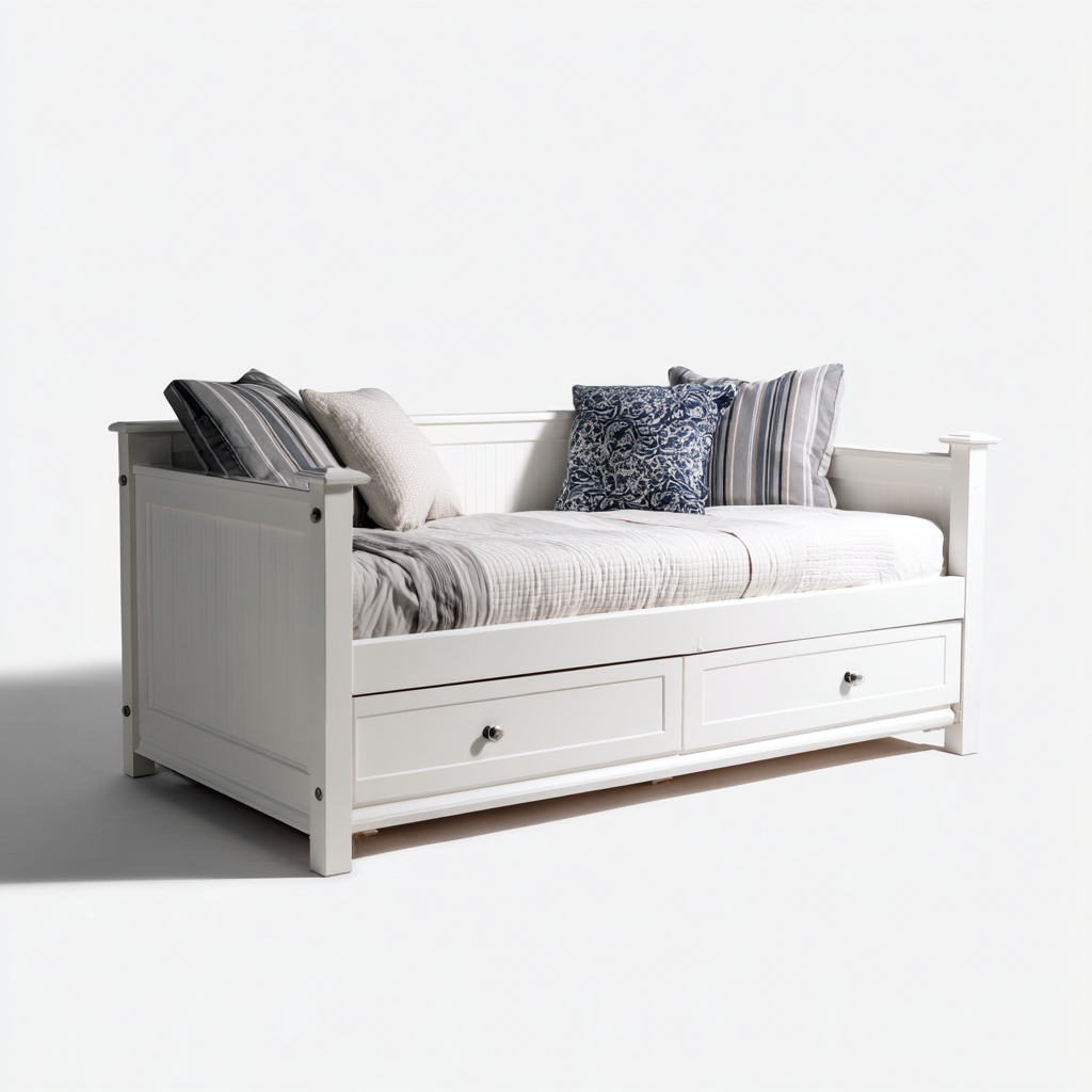Canapé lit bois 200x90x85 cm - blanc - pour salon et chambre - design contemporain avec rangement