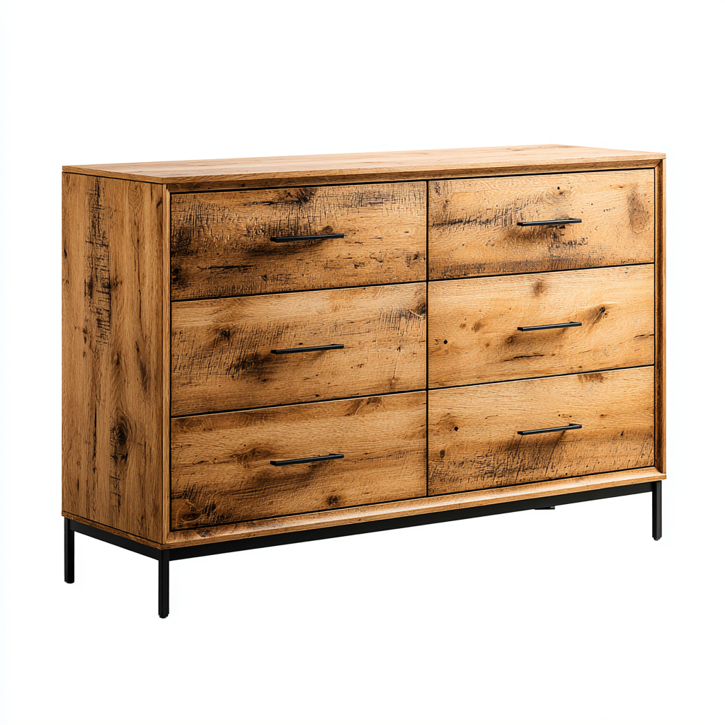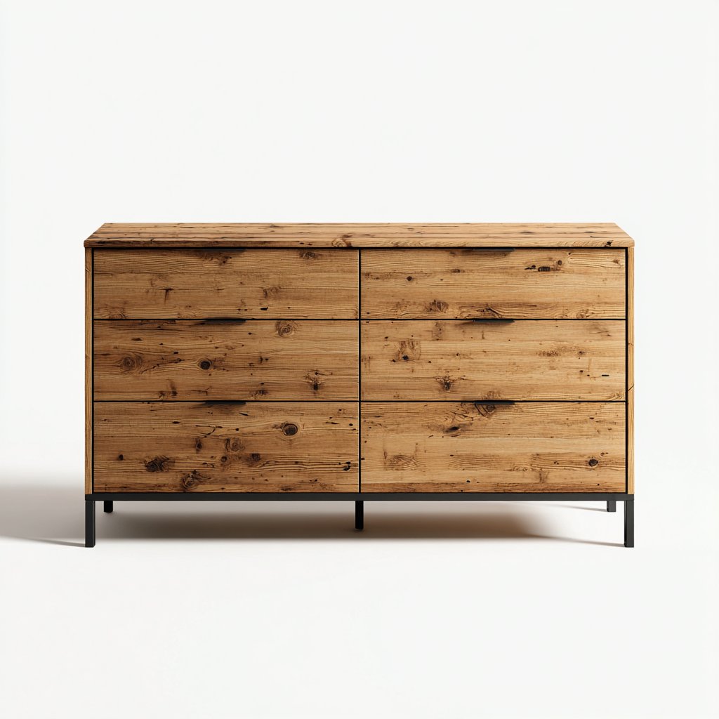 Commode en bois massif 140x45x80 cm - marron - style industriel pour chambre et salon