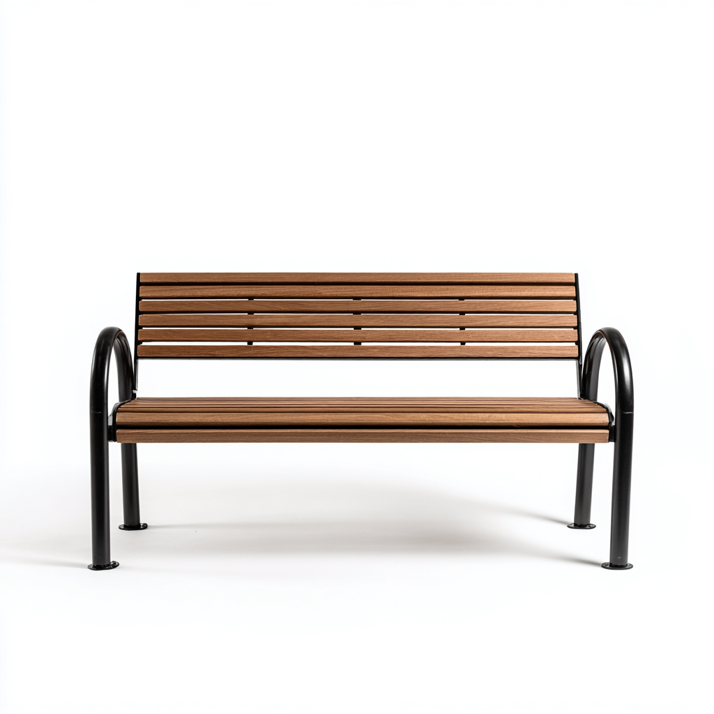Banc de jardin en bois et acier 150x50x85 cm - marron foncé-noir - style moderne pour extérieur