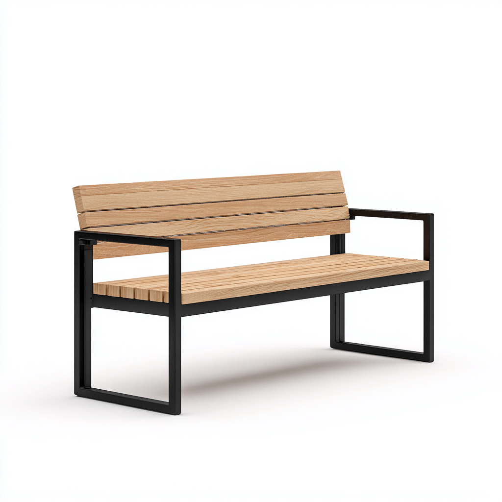 Banc de jardin en bois et métal 160x55x80 cm - bois naturel-noir - assise extérieure style contemporain
