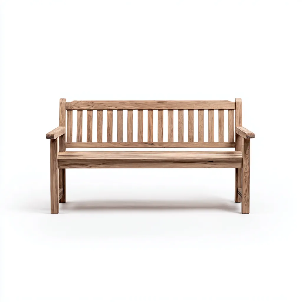 Le banc est fabriqué en bois massif avec une finition bois naturel qui met en valeur le veinage et l'aspect authentique du matériau. La structure robuste assure une bonne stabilité pour une utilisation régulière en extérieur.