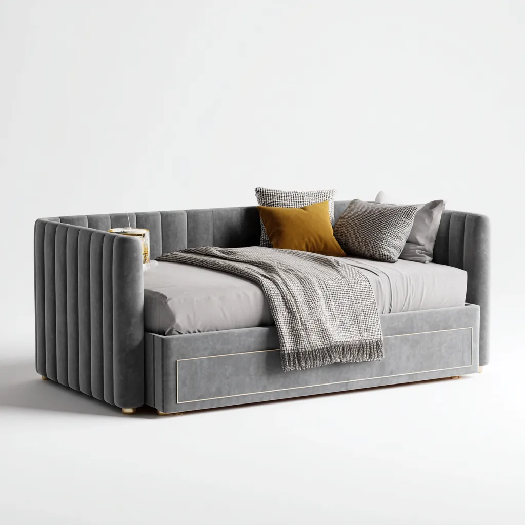 Canapé lit 200x90x85 cm - tissu - gris - design contemporain