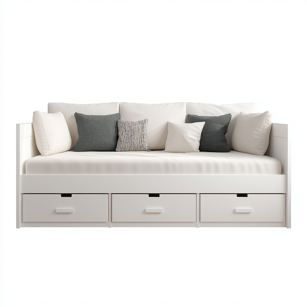 Canapé lit bois 200x90x85 cm - blanc - pour salon et chambre - design contemporain avec rangement