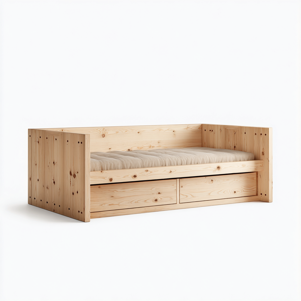 Canapé lit en bois 200x90x75 cm - Bois naturel - Design fonctionnel avec couchage et 2 tiroirs