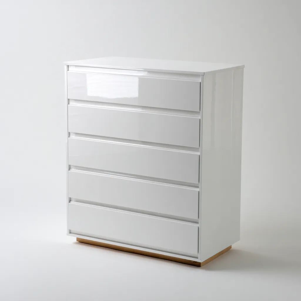 Commode MDF finition brillante 80x40x90 cm - Blanc - Design moderne pour chambre