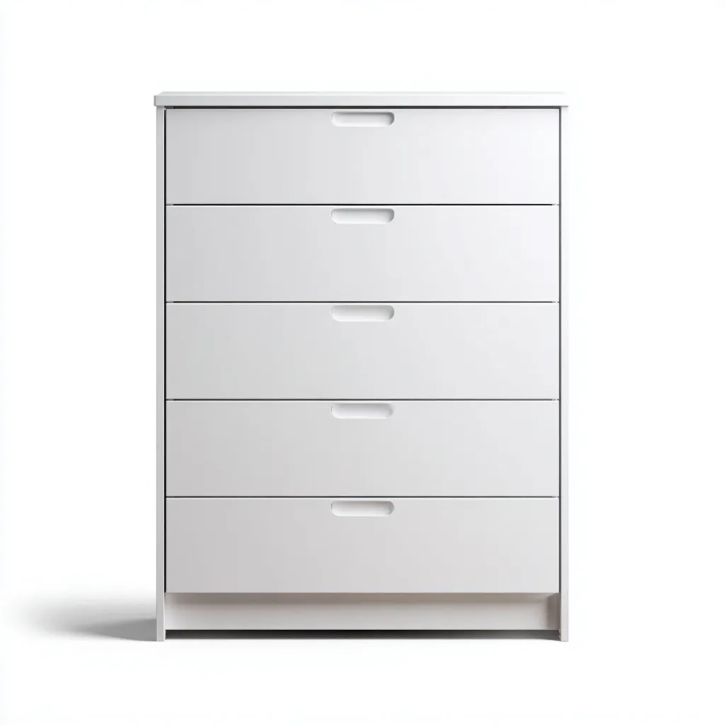 Cette commode moderne en finition blanche offre une solution de rangement fonctionnelle et élégante, parfaitement adaptée à une chambre ou à un espace de vie contemporain.
