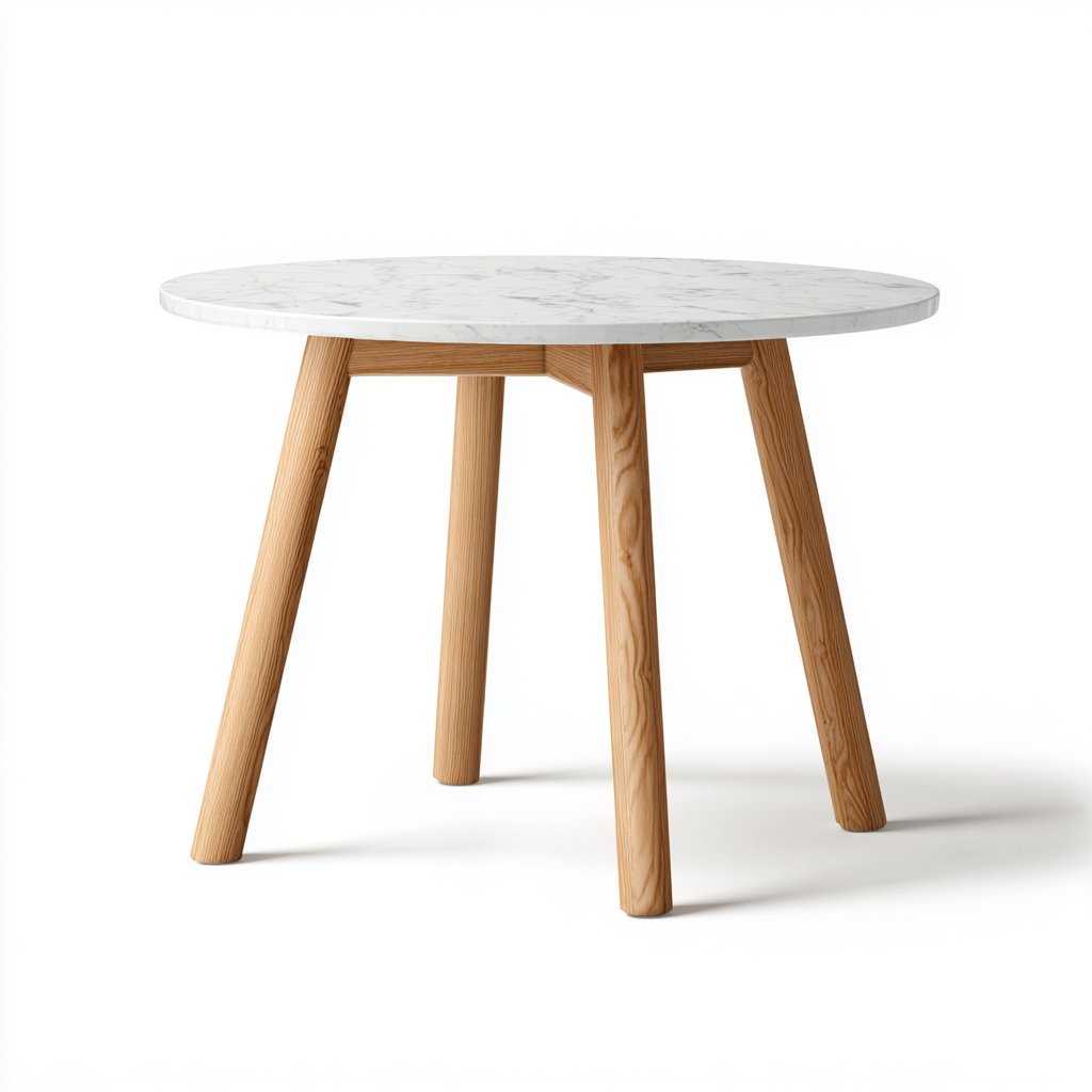 Table de jardin ronde en bois et plateau effet marbre 100x100x75 cm - blanc et bois naturel - surface extérieure - style contemporain