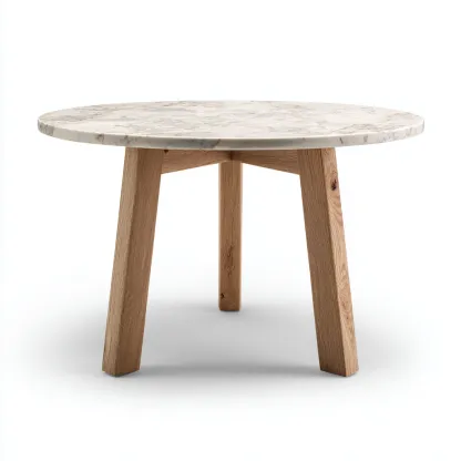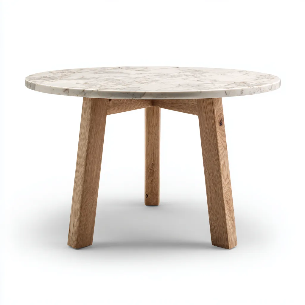 Table de jardin ronde plateau en pierre 90x90x75 cm - beige - bois naturel - table extérieure pour terrasse